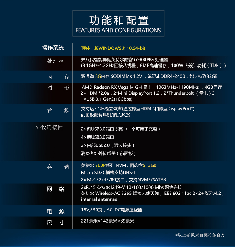 英特尔&Tencent WeGame冥王峡谷定制版NUC8i從子7HVKVAW