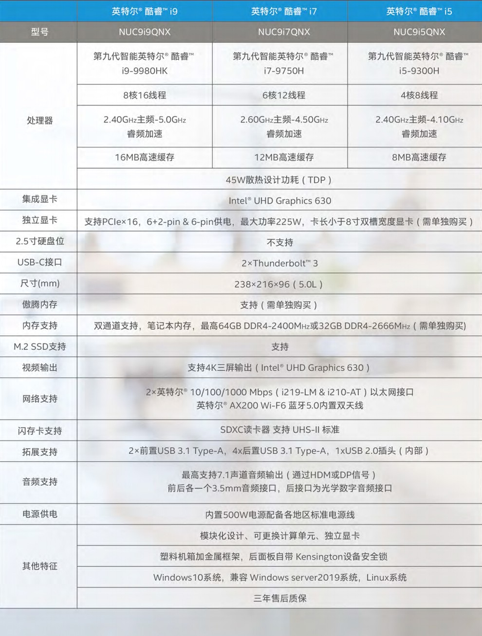 i7-9750H / i5-9300 / i9-9980HK 三款可选