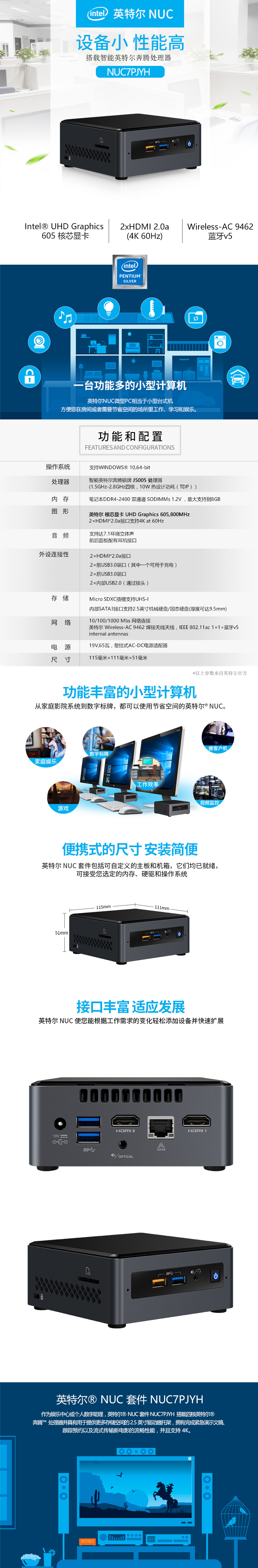 奔腾J5005处理器(qì)四核心微型PC家(j錯中iā)用办公电脑NUC