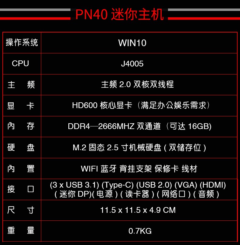 J4005迷你PC/游戏娱乐/商用办公/网课电脑/微型电脑主机