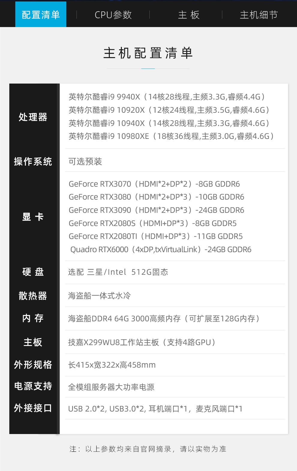 双路铂金(jīn)8124M/RTX3090深度学习主雜費机(多方案可选)