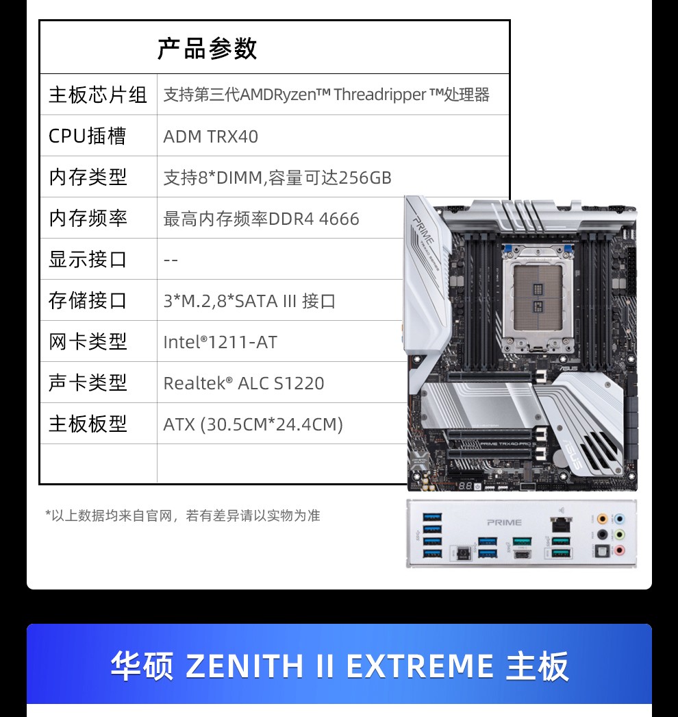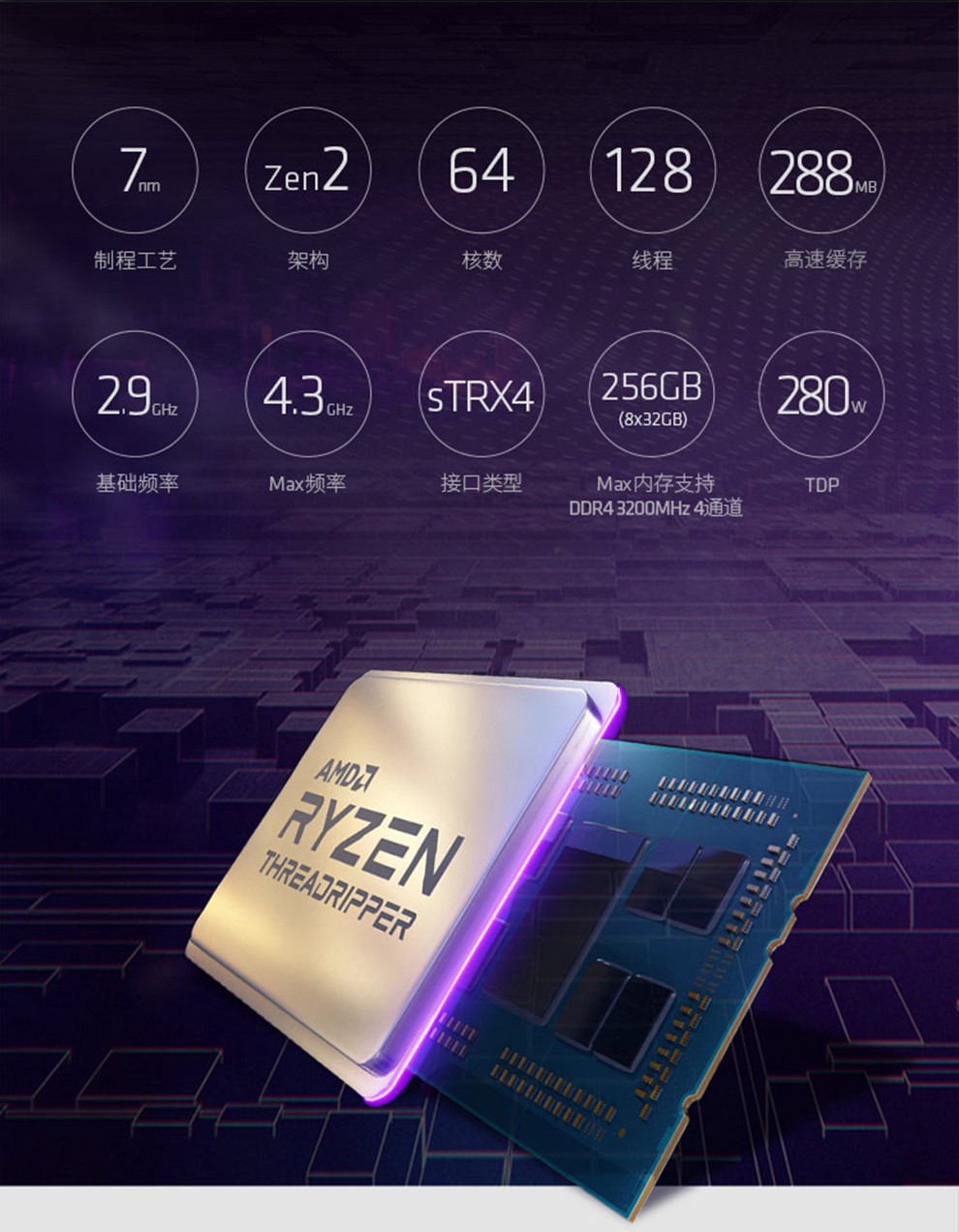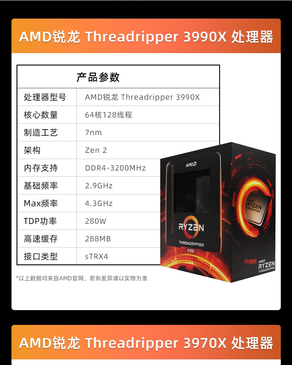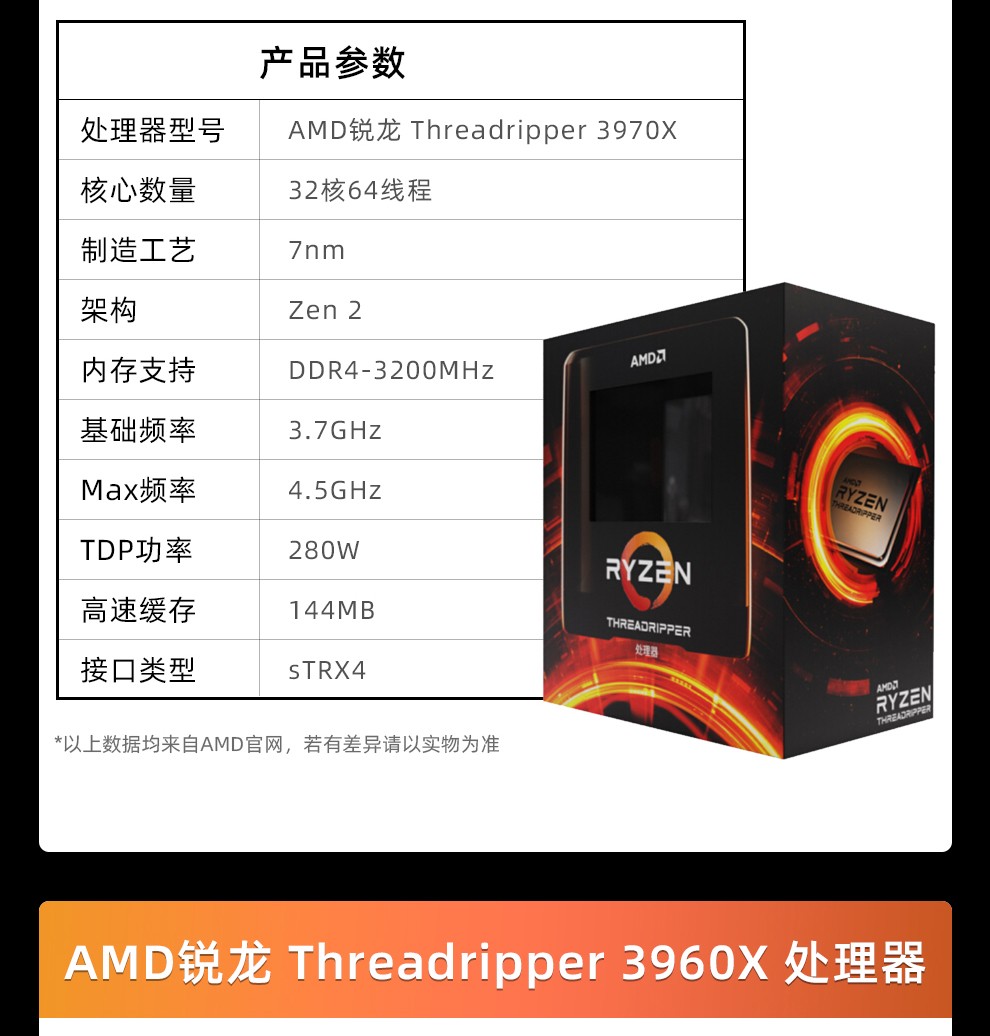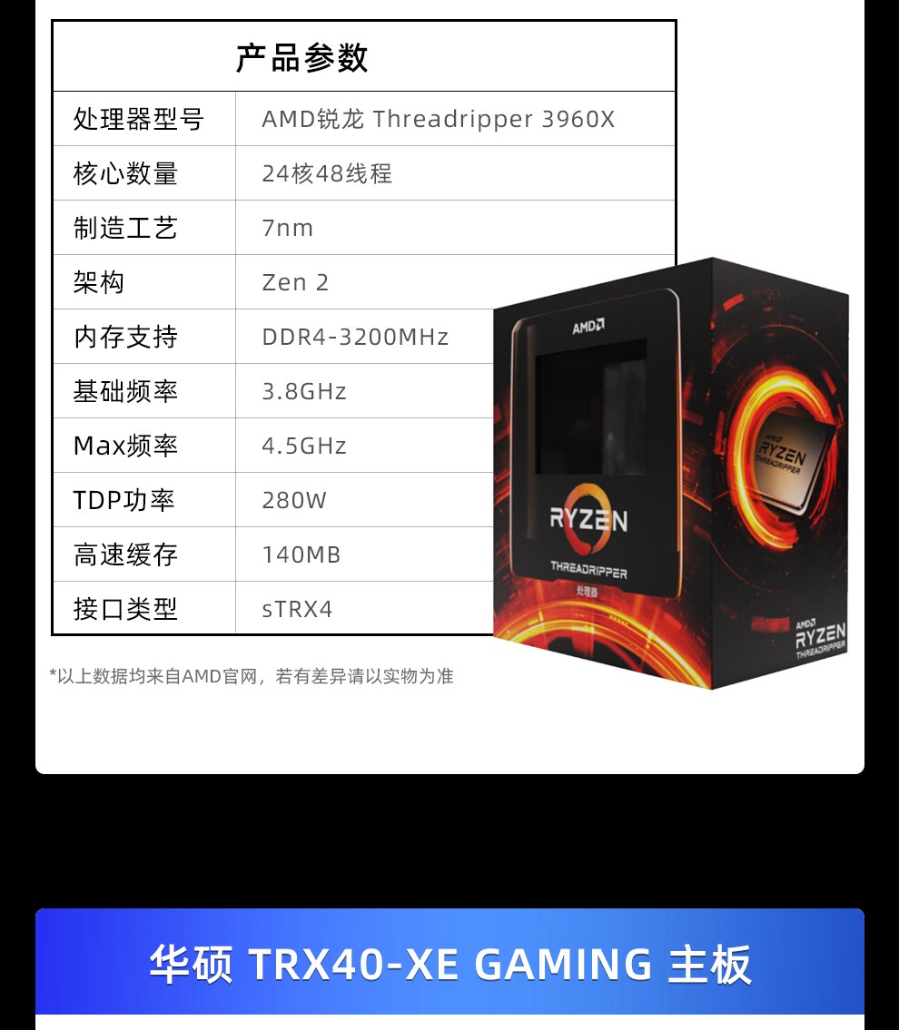 AMD 锐龙3970X 3960X 3990X 2950WX CPU处件影理器(qì)+华硕X399TRX40