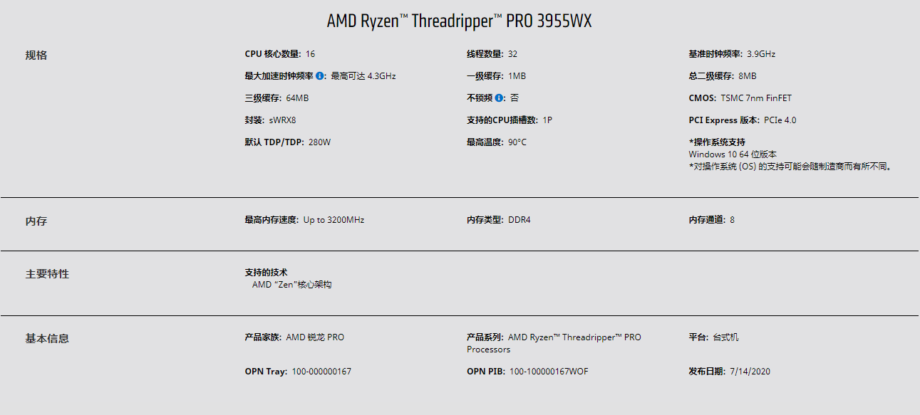 AMD锐龙 撕裂者 3000WX系列