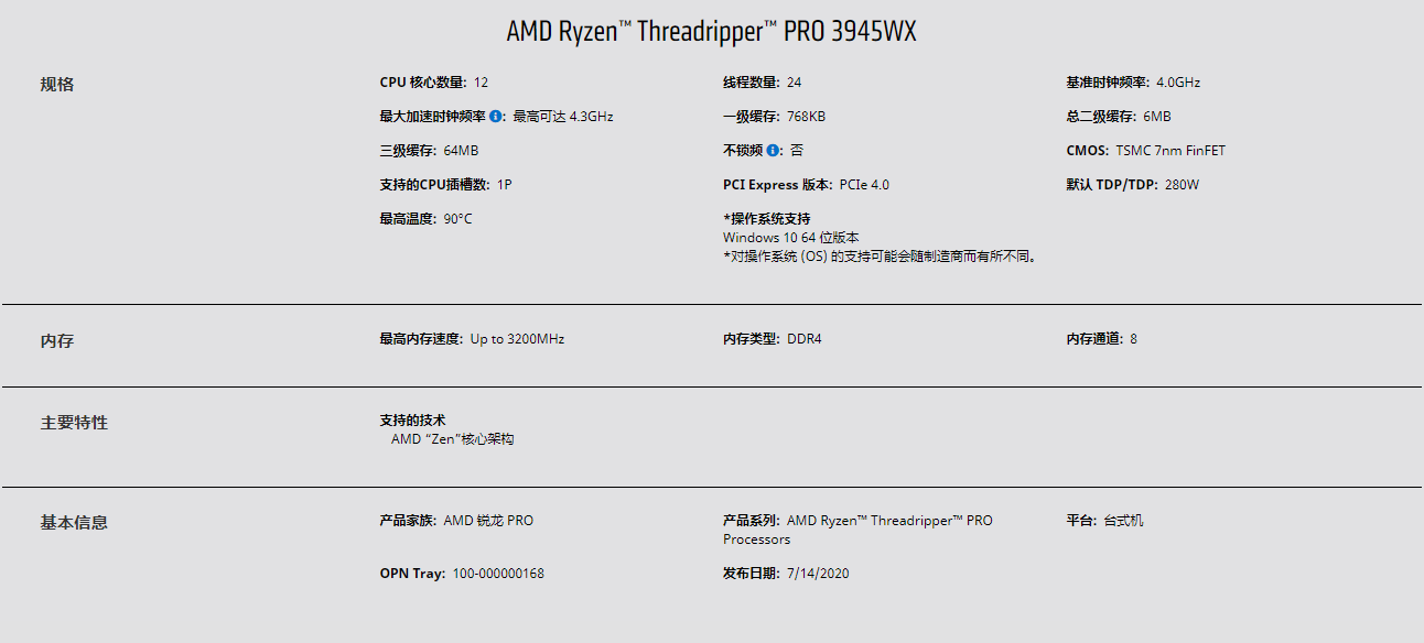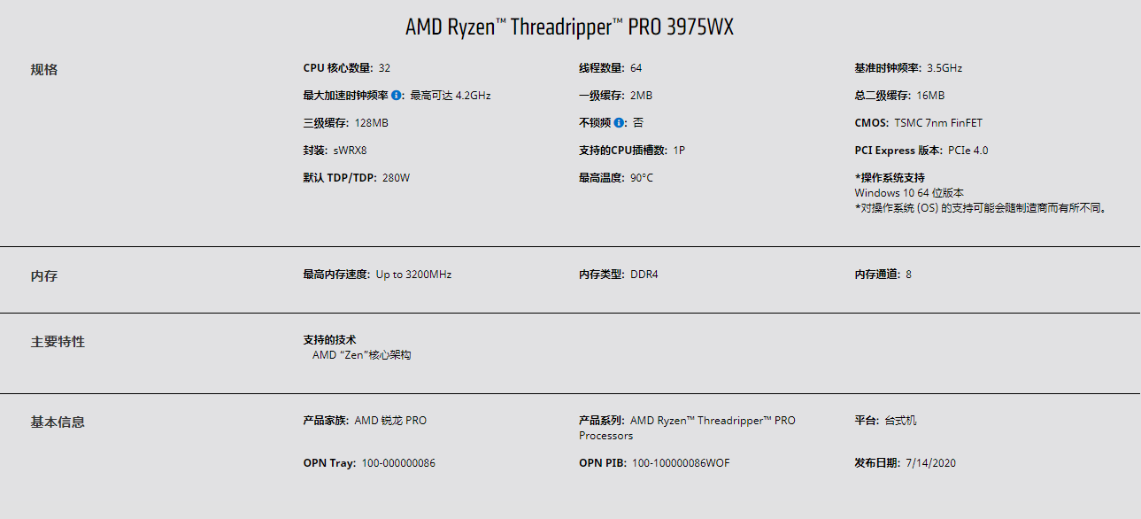 AMD 锐龙Threadripper(线程撕裂者) PRO 工(gōng場日)作站 CPU